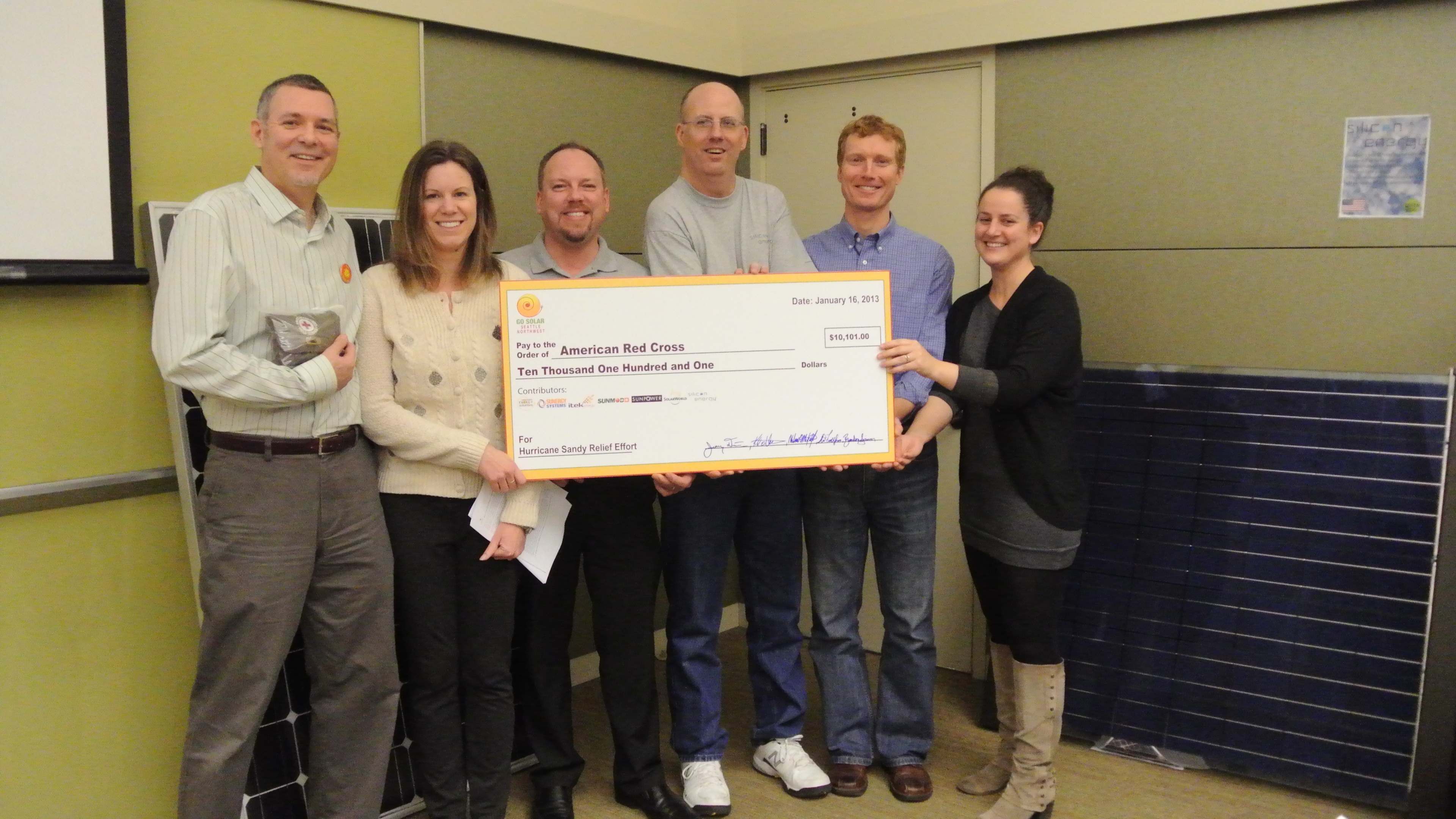 Representatives of Go Solar Seattle Northwest, a community-based solar energy campaign, presented a big check to our major gifts associate Ann Bodden this week. In the month of December, the organization raised $10,101 for Superstorm Sandy relief. Major solar contractors in the area helped raise the funds through solar-related sales.