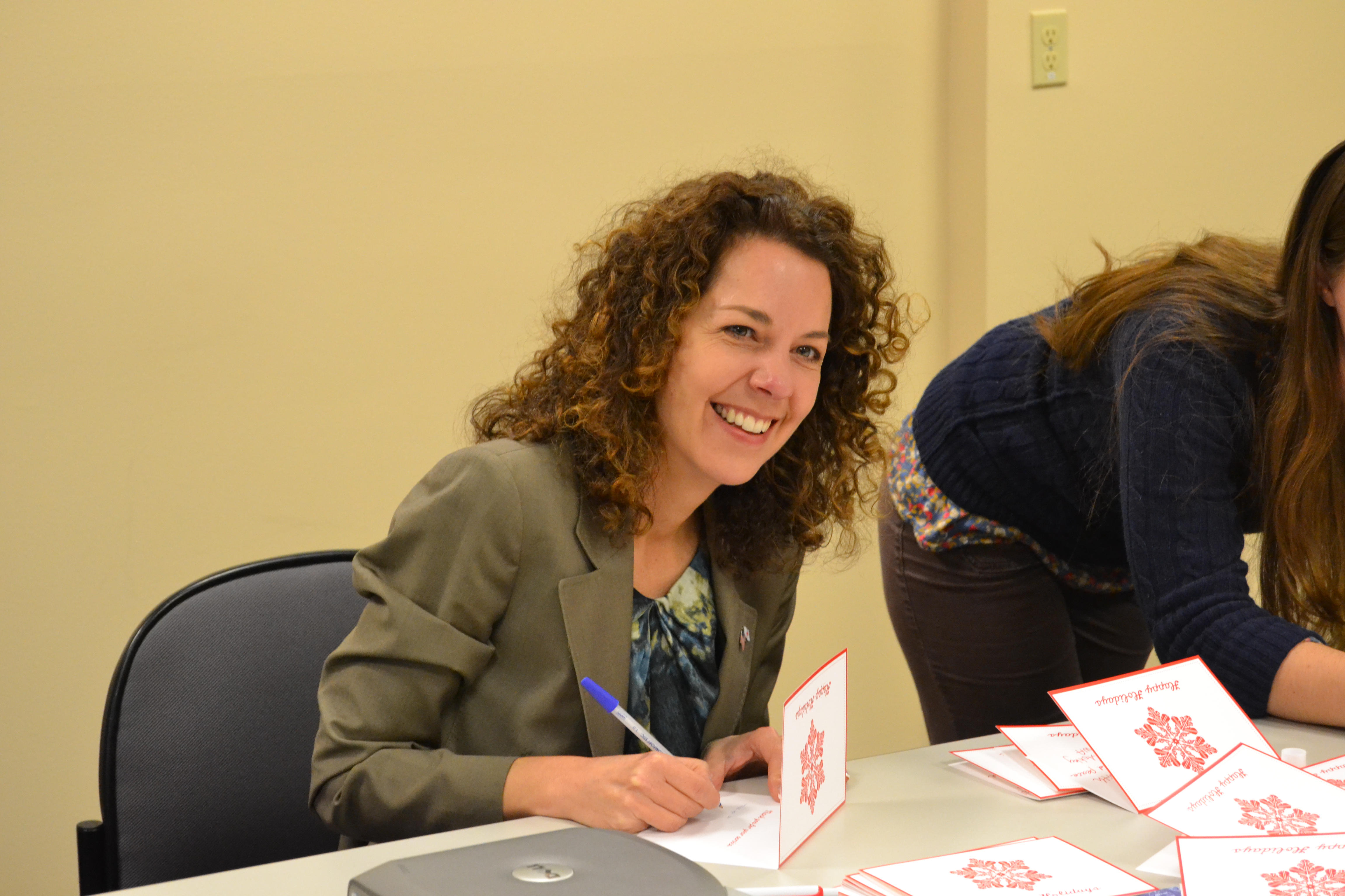 Above: Our Regional CEO Dawn Angelo signing a holiday card for a hero.