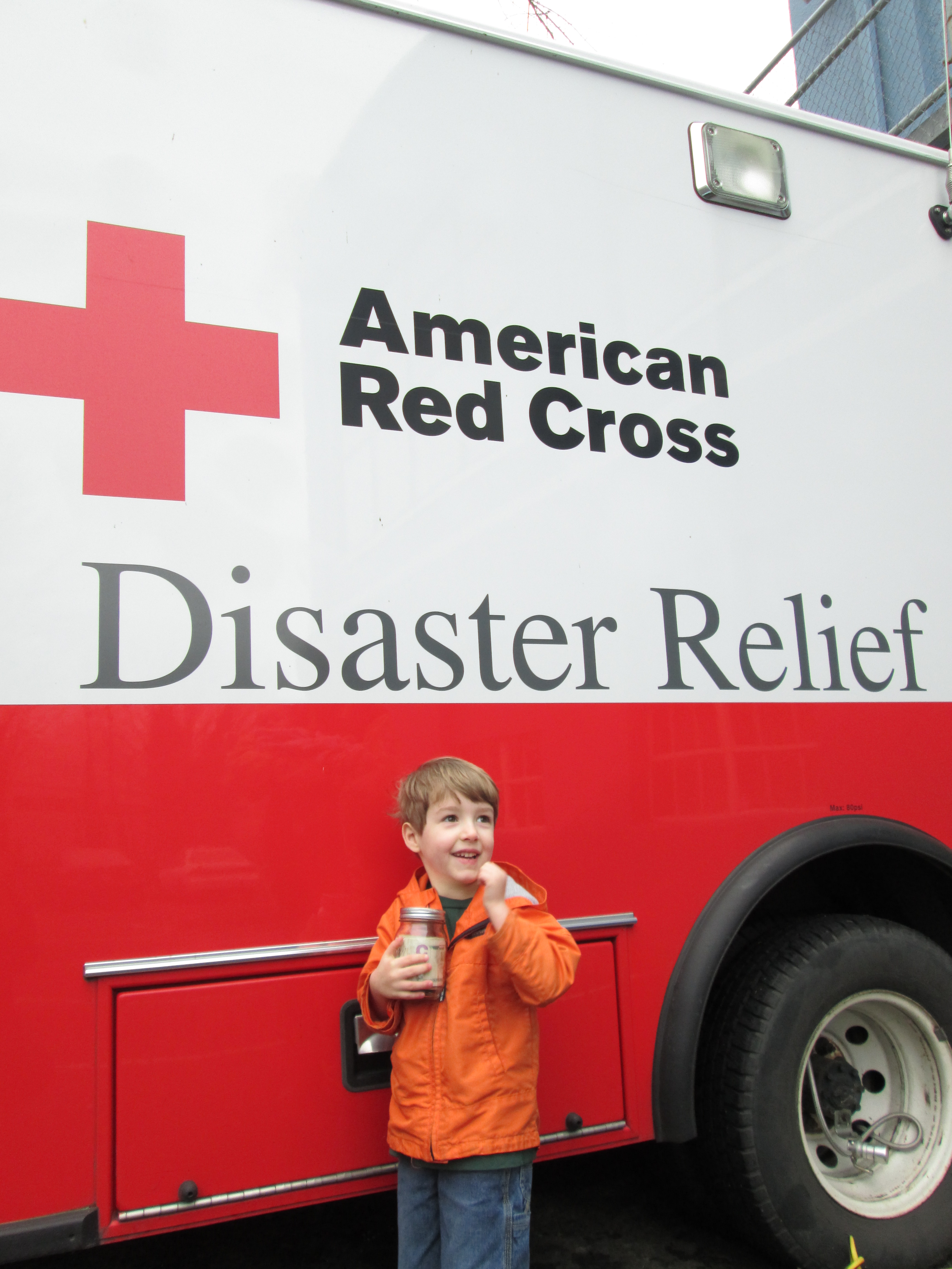 Our Mount Rainier chapter in Tacoma gave Cameron a short tour of the office, showed him the ERV and gave him a certificate honoring him for the $43.20 he raised as well as bag of preparedness things. The stickers and safety whistles were a hit!