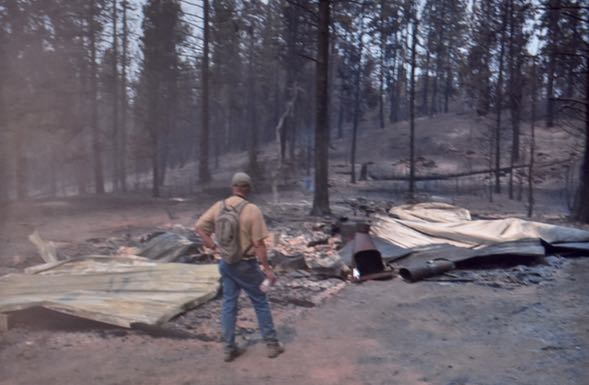 After his wife, brother-in-law, and sisters visited the site, Cenis did have a short respite from Red Cross duties to meet with them. “We looked through old family albums, remembered the good times there, and cried,” said Cenis. He went on to recall that as a young adult he had helped his dad plant many fir trees that are now 50-60 feet high. For some reason, they were not consumed by the fire like the surrounding pine trees.