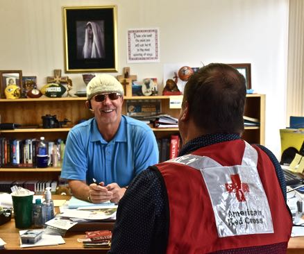 When the American Red Cross asked if the church would open its facilities as a shelter, Lane readily agreed, even though the Red Cross has been a target of some of his church community’s anger. “This past weekend we were serving 75 meals a day,” noted Lane, but now there has been an exodus as people have been able to go home and school is about to start. “It’s the first time the church has agreed to serve as a shelter… The Red Cross workers have been wonderful. They care about the people. We’ve enjoyed their staff and have worked well with them… It shows we can work together… We welcome you to stay as long as you need to.”