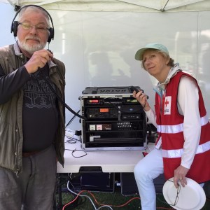 Volunteer Patty Houts-Hussey and a fellow Ham from Whidbey test the new Red Cross “Go Box” donated by PSE