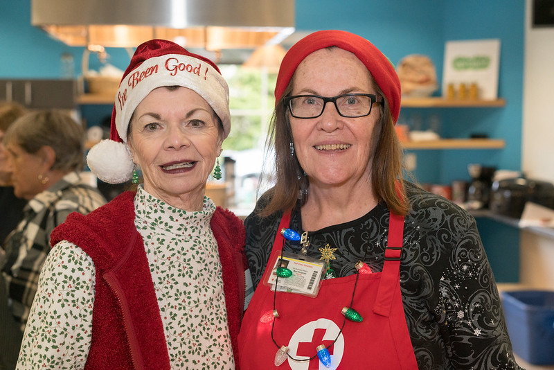 Besides being a venue for vet-to-vet chatting, the Cafe offers a nourishing meal prepared under the direction of Myra Rintamaki, a very active Red Cross volunteer. Myra does the food shopping and supervises the cooking, but also plays a key role in running the Cafe.