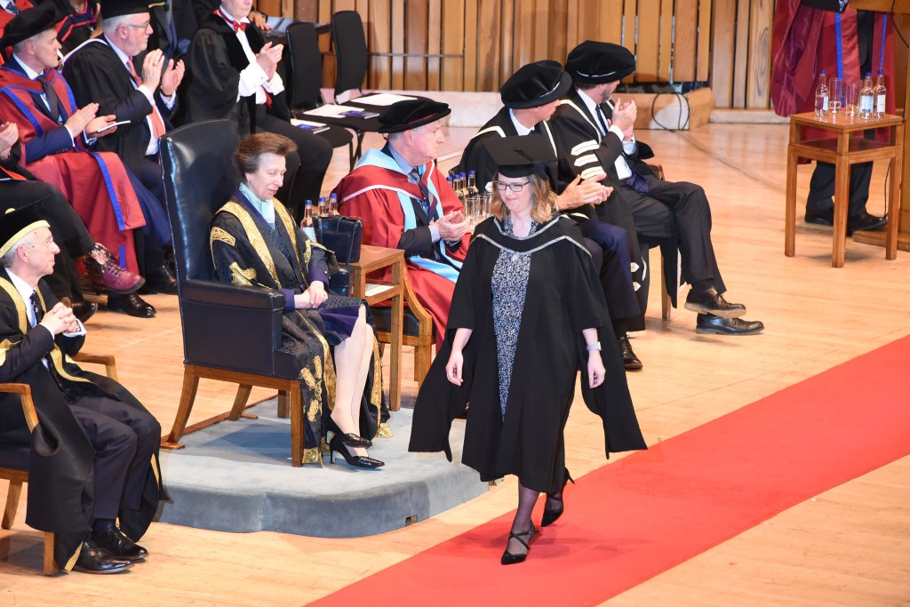 “I did that for 20 years,” she says. “I had another 20 years of work life ahead of me and I had to decide if I wanted to expand my knowledge base and do something different.” What she did was get a master’s degree in educational and social research from the University of London’s UCL Institute of Education. She did the program from home, but went to London to receive her diploma from Princess Anne – the school’s chancellor and only daughter of Queen Elizabeth. Voss says, “I got to curtsy while getting a personal congratulation from Princess Anne.”