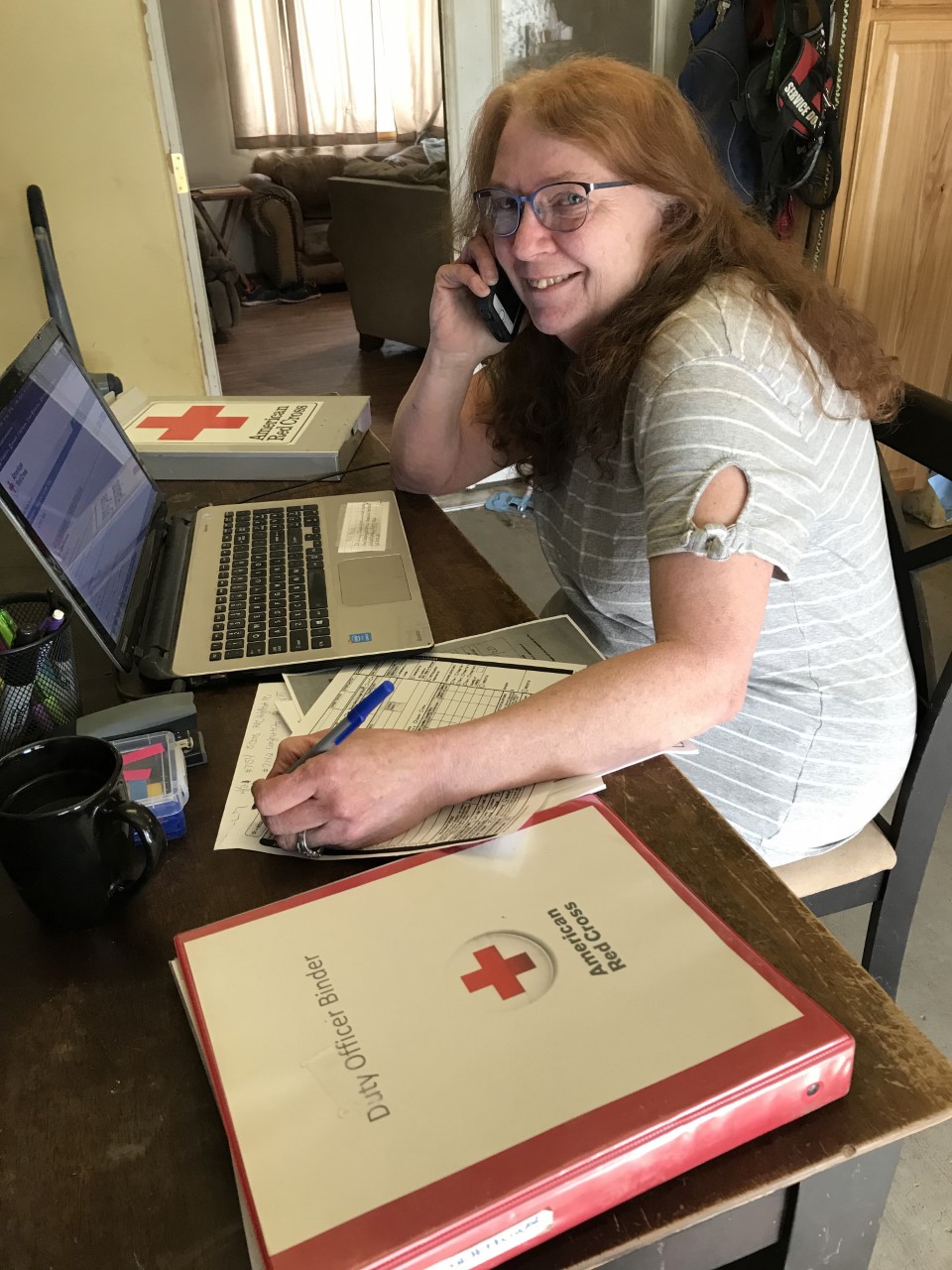 Every Red Cross chapter, including Debbie’s Greater Inland Northwest chapter, has Disaster Action Teams (DAT) which respond to incidents such as house fires. Debbie is both a DAT supervisor and a Duty Officer for her chapter. As Duty Officer, she fields calls for assistance and organizes the response by DAT units. As supervisor, she then directs the Red Cross response.