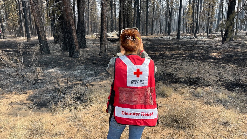 It’s not hard to see why Ryan–and the Red Cross in general- is focusing on the explosion in climate-related disasters. Ryan’s chapter covers 15 counties in Eastern Washington and North Idaho. The region was ravaged by wildfires in 2020. Ryan personally responded to the fires that destroyed the Eastern Washington towns of Malden and Pine City that September. Ryan says he visited the Malden site almost every day for nearly two weeks, leading the Red Cross response there.