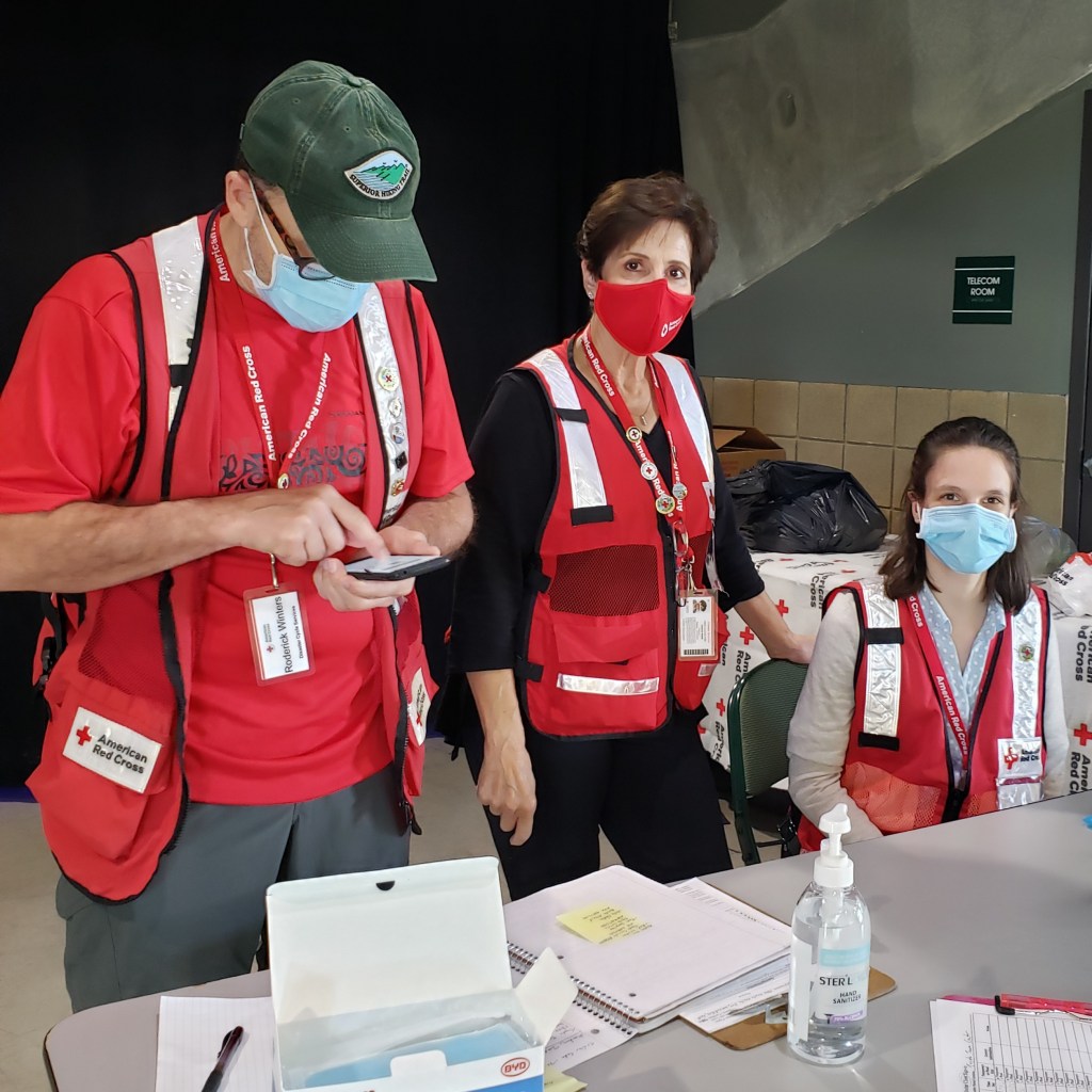 During our interview, I asked Kellie how DHS volunteers serve Red Cross clients. “We respond whenever there are health care needs, whatever the disaster,” she explained. A client might arrive at a shelter with a serious medical condition, but with all medications left behind at the disaster scene. The stress of fleeing a fire and being lodged in a shelter might worsen an existing health issue.