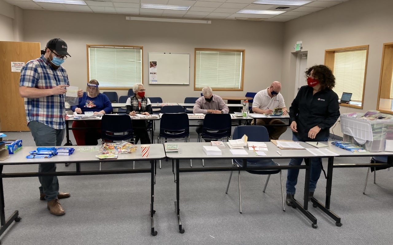 The Central and Southeastern Washington (CSEW) Chapter of the Red Cross held a card signing event on December 1 this year. Volunteers wrote notes and signed cards and packaged them with cookies. The holiday packages for the CSEW area will be delivered to veterans at the Columbia Basin Veterans Court and to veterans at Walla Walla VA facilities throughout the month.