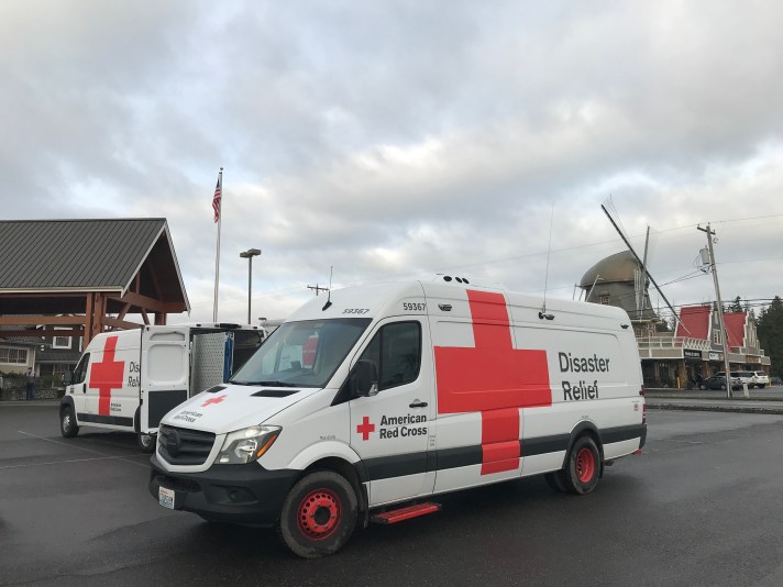 Summing up its response, the Red Cross says it “operated shelters and provided meals in Whatcom and Skagit counties through December 3. We also distributed emergency supplies through multiple impacted communities and conducted casework at a Service Center in Bellingham through December 11.” The Red Cross served a Thanksgiving Day meal at its shelters. Finally, Red Cross workers assessed the damage to hundreds of water-logged homes.